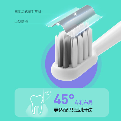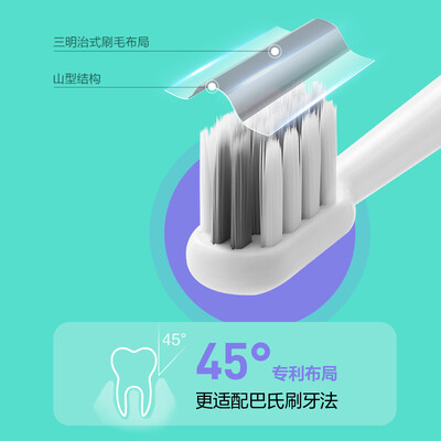 东丽银离子抗菌软毛,柔而不倒,舒适按摩牙龈。刷头采用山型结构的三明治式设计,给牙龈按摩级的享受,让牙齿更强壮有力。