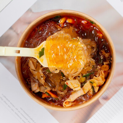 甄选个大鲜嫩红薯粉与木薯粉,粉条绵长劲道,采用先进的二代磨浆制粉工艺,自然放置的陈米制作而成,自然晾晒,吃的放心。