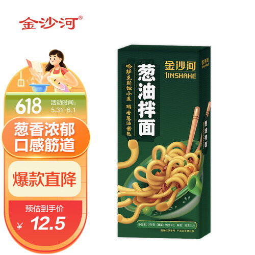 这款金沙河浓香葱油拌面,选用进口小麦作为原料,不打药、不施肥,健康绿色,再搭配上醇厚的酱包,好吃到停不下来。
