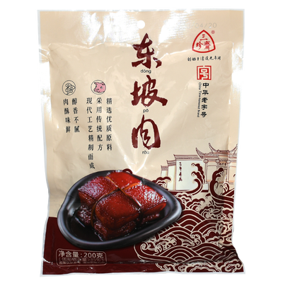 这款东坡肉红亮且有卤汁,不会像有些卤牛肉很干且柴,切片后牛肉纹路清爽,口感咸鲜香浓,酥烂入味,非常好吃且适宜老人食用。