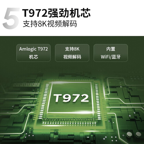 采用65英寸高色域超薄全面屏设计,画质鲜亮且明暗对比更强。支持8K视频解码,大幅提升性能,运行更高效。