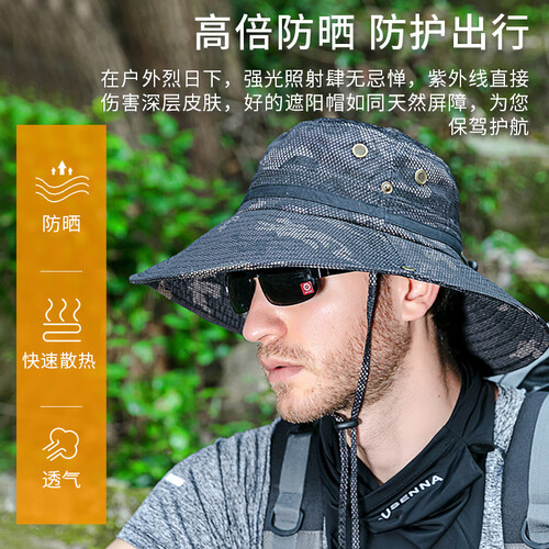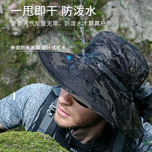 采用黑灰迷彩元素,凸显男士的硬朗魅力。采用防污耐用面料,耐磨又透气,配以舒适透气帽顶,夏日戴着防晒且不闷热。