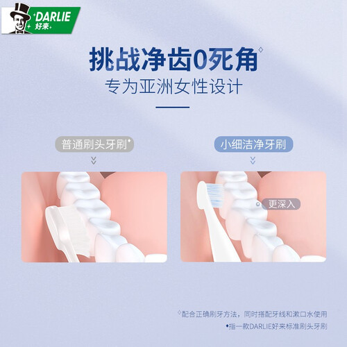 专为亚洲女性设计,灵动的小刷头,结合微米级纤细毛尖,细洁净齿。刷毛柔软细密,避免刺激牙龈带来的不适感。
