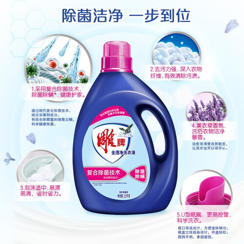 采用特殊配方,有效去除尘螨和污渍,贴心守护您和家人的健康生活。薰衣草花香,清除衣物异味更轻松。U型瓶嘴设计,控制用量。