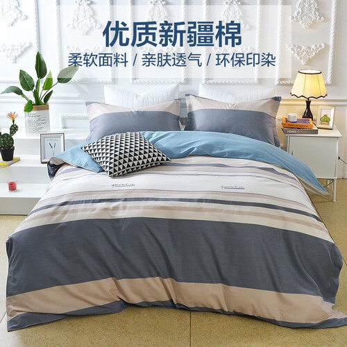 采用亲肤纯棉面料制作,质地柔软,透气性好,带来整晚的舒爽睡眠;搭载活性印染工艺,机洗水洗不易掉色、起球。