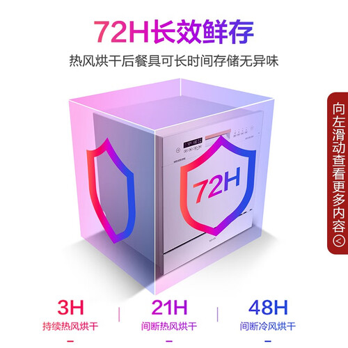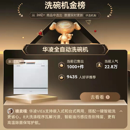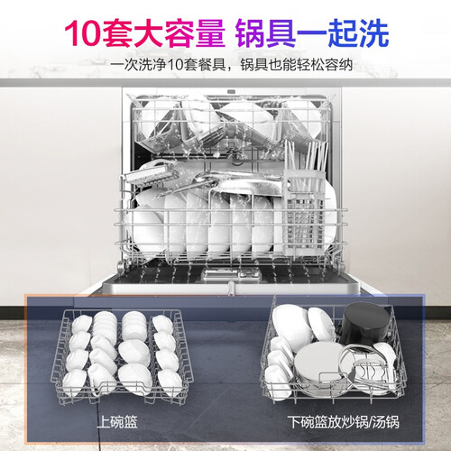 华凌VIE6支持嵌入式和台式两用,搭配一键智能洗更省心。8大洗涤程序瓦解污渍,智能油污感应告别残留,更有高温除菌保驾护航。