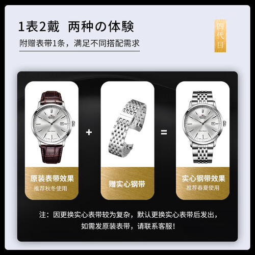 搭载F6型自产机械机芯,满弦后能够持久储能40小时,持久稳定可靠。简约独特的蓝色指针,让你尽享每一秒时光的流淌。