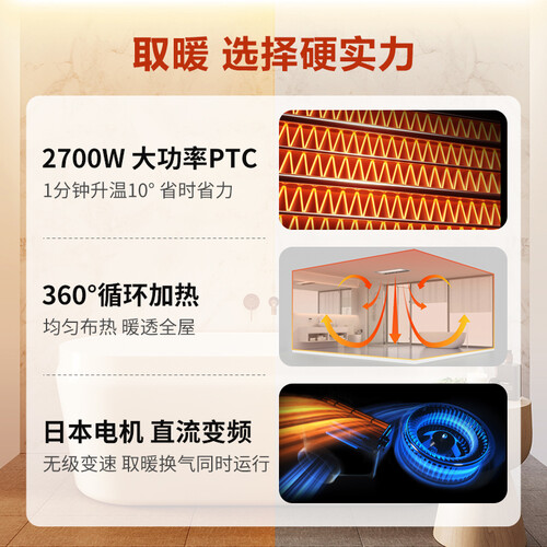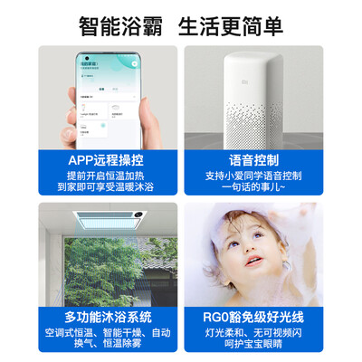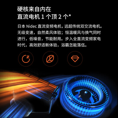 柔光照明,配以LED光源,出光舒适自然,保护眼睛,创造明亮沐浴空间。搭载直流变频电机,有效降噪静音,沐浴时安静不扰人。