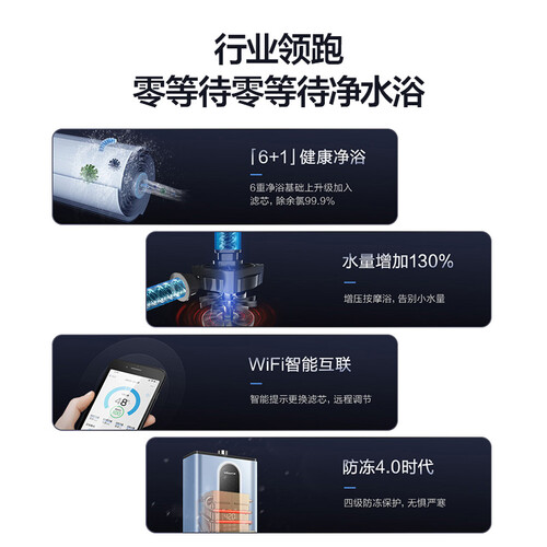 全新滤芯,可以有效去除水中颗粒杂质、吸附异味。具有四大零冷水模式,可以适合不同时间不同用水习惯。