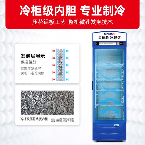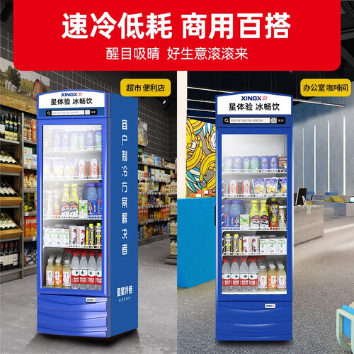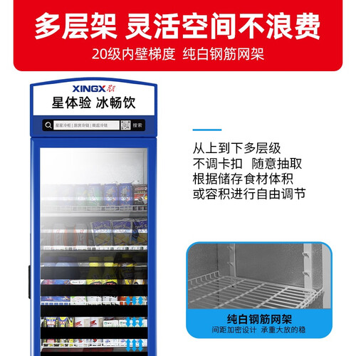 安装双层中空玻璃,具有较好的隔热锁冷效果,并且内部物品清晰可见。外置散热设计,可有效提升散热能力,延长冷柜使用时长。