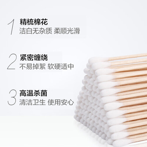 精制脱脂棉配合水滴型棉头,触感绵柔使用舒适。经过高温消毒和紫外线除菌处理,健康干净没有卫生隐患,安心无忧。