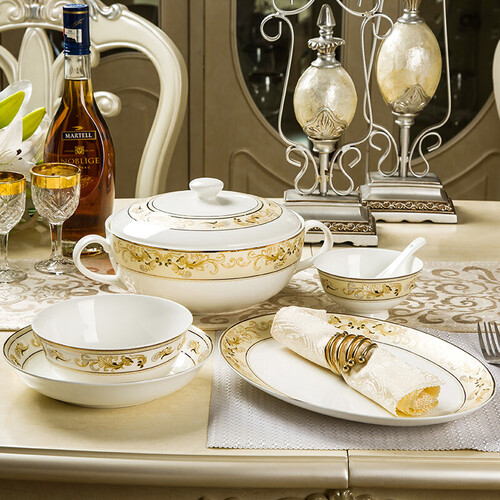 瓷魂 欧式金边碗碟套装