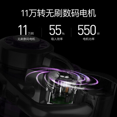 550W大功率和11万转数码电机的加持,吸力强劲,清洁深层,家居更洁净,宝宝轻松爬。专业梳毛条结构,避免缠绕,无惧毛发。