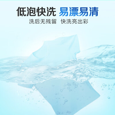 拥有三倍洁净力,能够更加强有力的清除污渍,让衣物重现亮白;易漂易清的配方,无需您多次涮洗,节水省时让您用着更加省心。