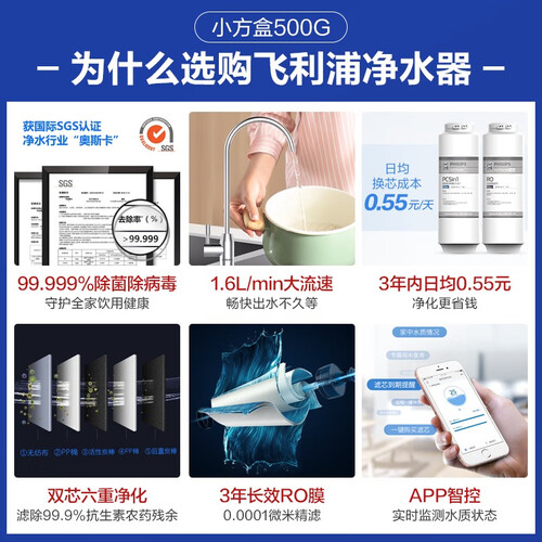 智能龙头,不同颜色代表滤芯寿命不同。滤芯自动冲洗,自动冲洗滤材上大颗粒杂质。一体化水路,减少接口有效降低漏水风险。