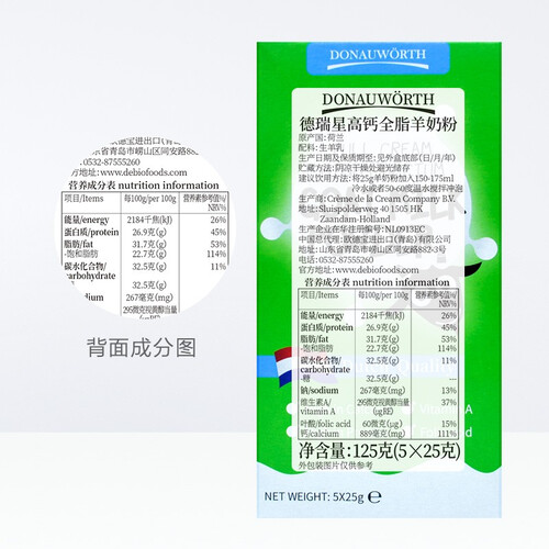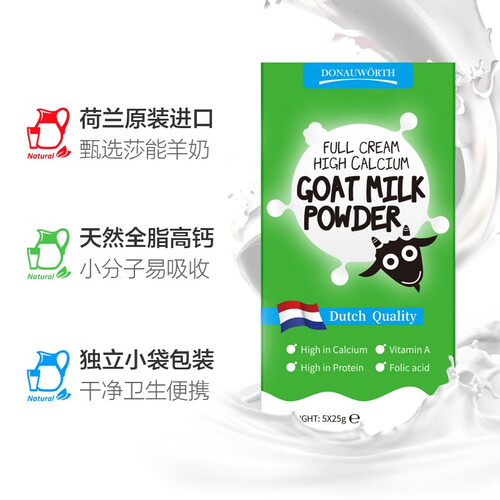 荷兰进口,双重脱膻,有效解决了对羊膻味道敏感的人群,独立的包装设计,不仅方便携带,同时也保障了粉质不受潮。