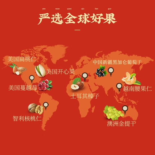 智利的核桃、越南的腰果等优质食材,不仅品质出众且营养丰富。鲜果采摘后放入0℃保鲜库,经低温烘焙,留住新鲜口感。