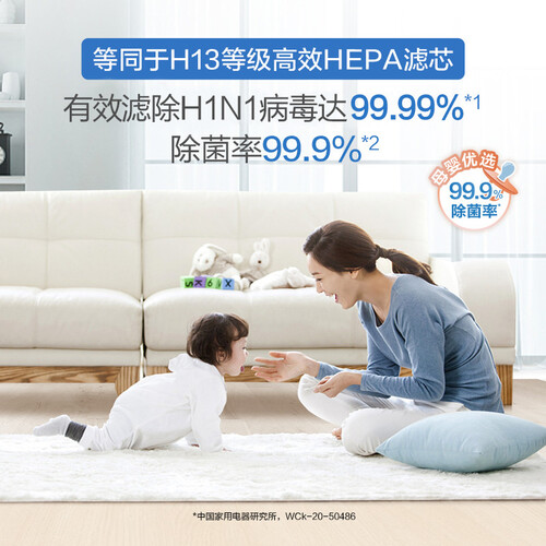 设有数字显示屏,可直观显示空气质量,方便及时调整净化模式,另外采用3D环绕气流设计,可快速净化大面积的房间。