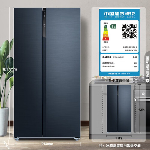 美菱 无霜三系统十字对开门冰箱