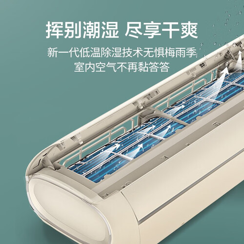 这款空调搭载新一代低温除湿技术,能够让室内环境保持干爽不潮湿的状态,有它无惧梅雨季。出风效率高,风量大。