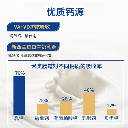 富含丰富的钙元素,能够维护骨骼健康,预防软骨病。同时又能帮助关节管理,提供润滑保护,维护狗狗的骨骼健康。