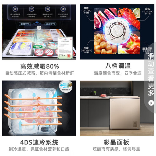 拥有速冻技术,快速冷冻大件食材,保留食材营养。拥有八段温度可调,自由切换,四季适用。