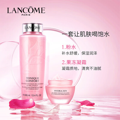 四季适用的兰蔻大粉瓶和水份缘凝霜组合在一起的水润舒缓保湿套装,专门针对干燥肌研制,可密集为肌肤补充水分,缓解干燥发红肌。