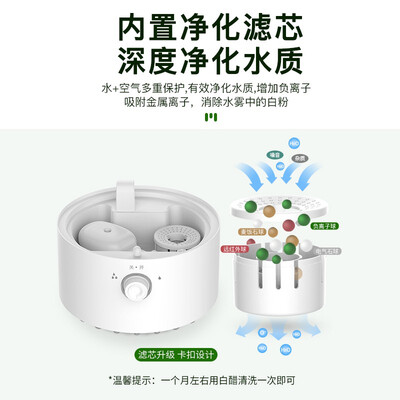 面积更大的圆柱形造型,放置稳定不易滑倒,而且蓄水量大。多重净化功能,深层过滤空气中灰尘,达到空气清新。