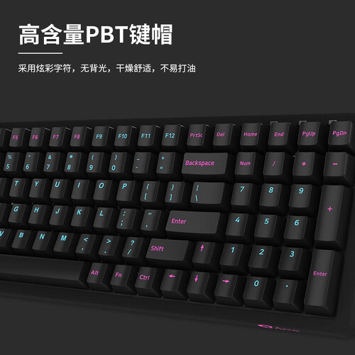 采用85%含量PBT键帽设计,触感舒适不易打油,长久使用依旧整洁如初,还采用正刻炫彩字符设计,清晰耐磨,不易褪色。