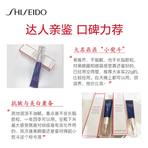 眼霜中加入了高浓度视黄醇,可带来更有效的淡纹效果。角鲨烷成分的加持,对眼部浮肿和黑眼圈具有很好的改善作用。