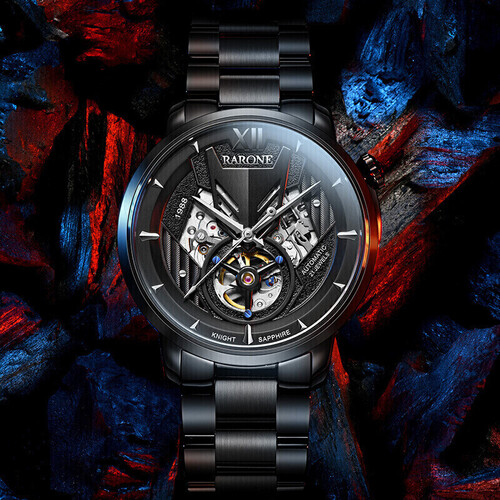 采用别致的骑士面具造型,新颖别致,外出佩戴避免撞款尴尬,潮男搭配好选择。搭配仿佛利箭出鞘般的表针,干净利落,细节感满分。
