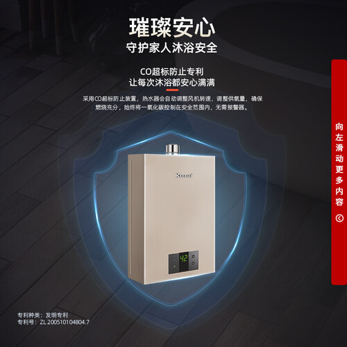 淡雅的香槟金配色外观,优雅大气,更能装点浴室环境。配备LED大屏操控面板,清晰掌控水温,让家人安心沐浴。