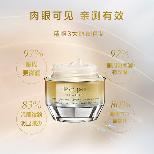 含深层护理成分,为肌肤注入活力,眼部肌肤由内至外饱满充沛;可消除黑眼圈,抚平眼周细纹,丰盈提拉紧致,让眼部更有神。