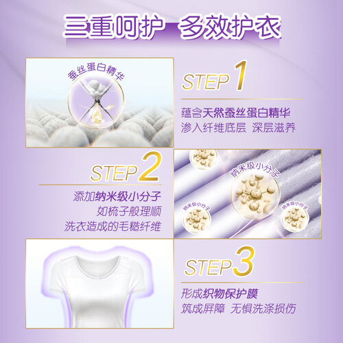含有蚕丝蛋白精华的衣物柔软剂,滋养纤维,告别僵硬感。同时能够形成织物保护膜,减少洗涤损伤,很适合家用。
