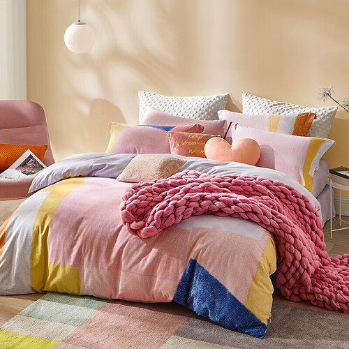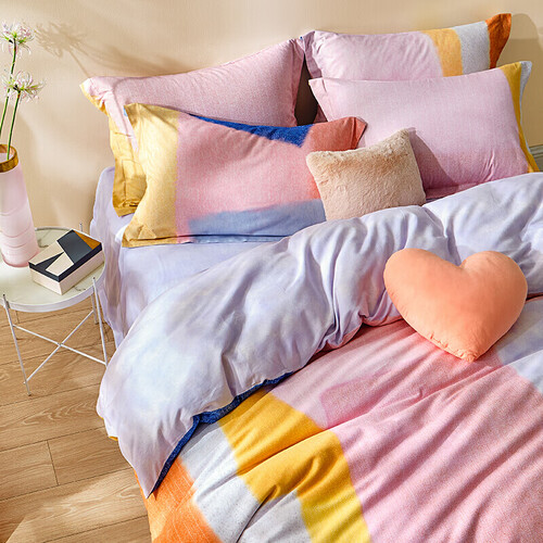 色彩拼接的被套,给人一种眼前一亮的视觉观感,整体造型更加清新,搭配磨毛面料,触感柔软细腻,让您轻松睡整晚。