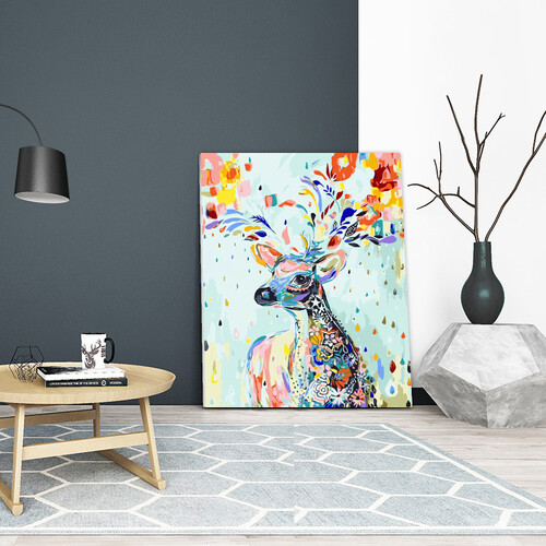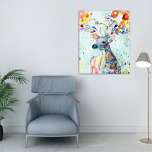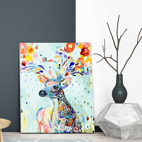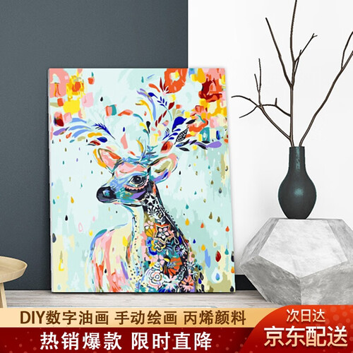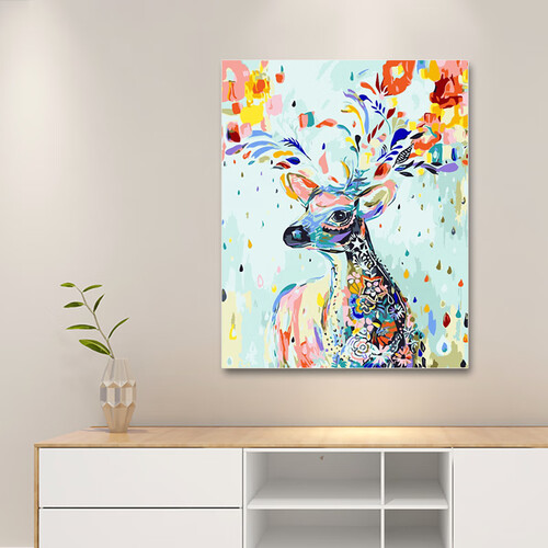 萌趣可爱的彩绘小鹿图案,使数字油画更显活灵活现;配色更加鲜艳明亮,使数字油画更显干净整洁,可以装饰你的卧室环境。