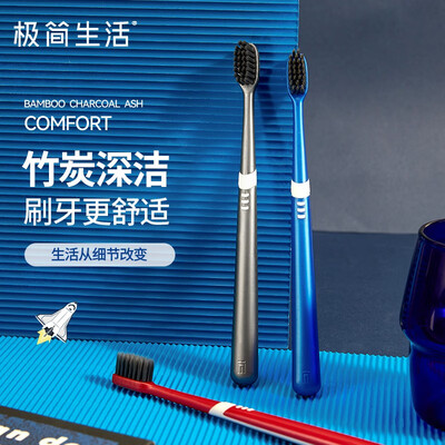 极简生活 高密竹炭灰软毛牙刷