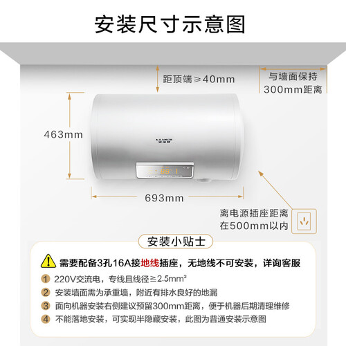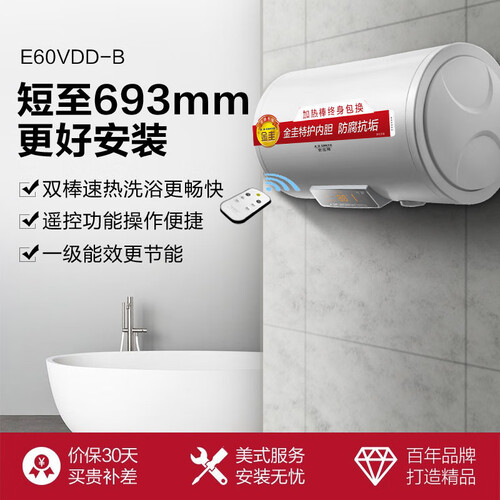 机身长度仅693mm,小巧精致,安装方便,灵活适应多种安装环境。独立双棒分离速热,按需自由选择加热方式,满足不同需求。