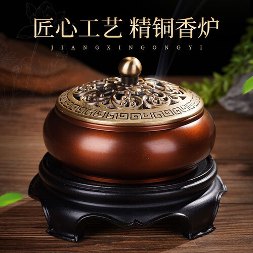 采用整块黄铜车制而成,造型浑然一体,沉稳大气。炉盖采用镂空花纹作为装饰,让烟雾自然流动,流露淡淡香气。