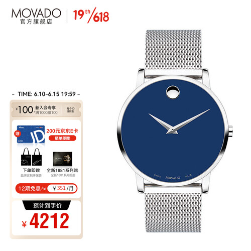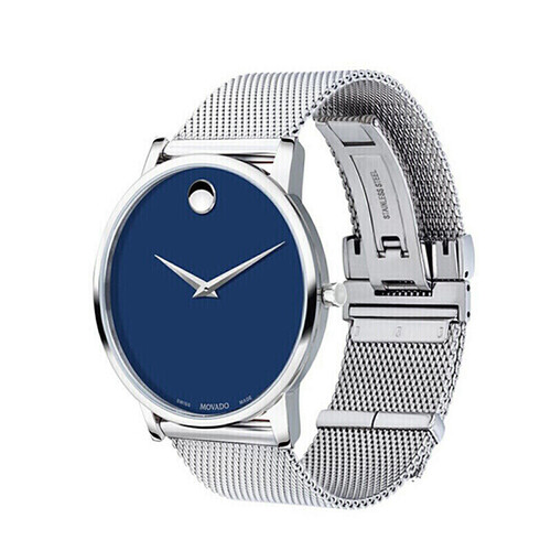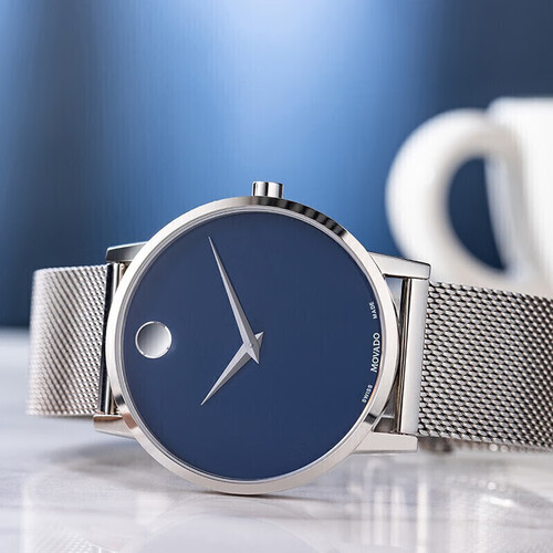 蓝色的表盘设计,时尚又耐看,银色的双针式,更显简约大气,结合米兰钢制表带,优雅耐看。