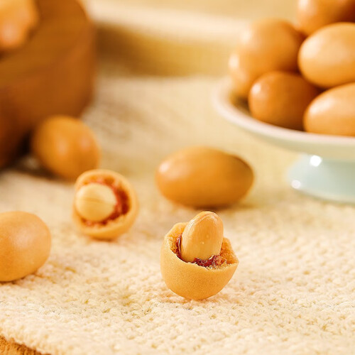 选择优质糯米粉制作,粉质细腻均匀,花生吃起来酥脆可口。采用烘烤制作,拒绝油炸工艺,口感咸中带甜。