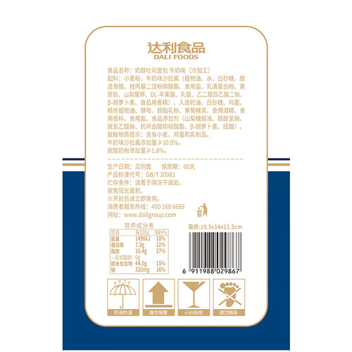 采用小麦粉、鸡蛋等天然原料,取材纯净健康,保障了可靠的食用品质。奶醇吐司片片醇香,营养又美味,代餐好选择。