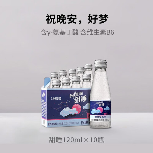 富含烟酰胺等多种营养物质,饮用之后,对助眠等有促进和安稳作用。120毫升轻巧容量,一次饮用分量恰到好处。