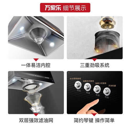 拥有多重劲吸系统,疾速吸除油烟,保持厨房空气洁净。设有双LED照明灯,清晰查看食材烹煮状况,下厨体验佳。