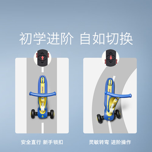 将操纵杆与座椅设为一体结构,只需操控座椅前端按钮,即可切换技能。拱桥式转向支架搭载前轮调节系统,帅气骑行更安全。