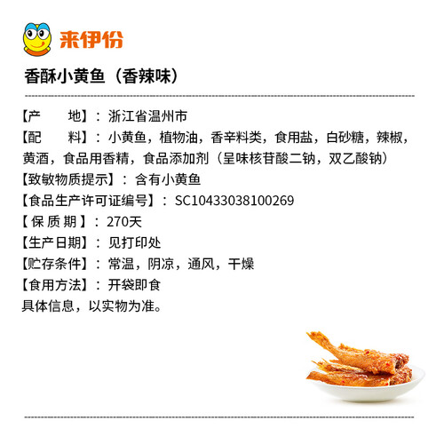 来伊份 香辣味小黄鱼即食零食