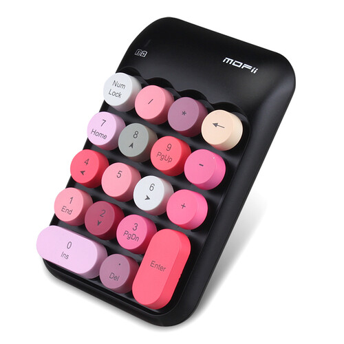 紧凑按键布局,带退格键,免驱动即插即用,十米稳定传输距离,圆形巧克力键帽,磨砂质感,流线造型。