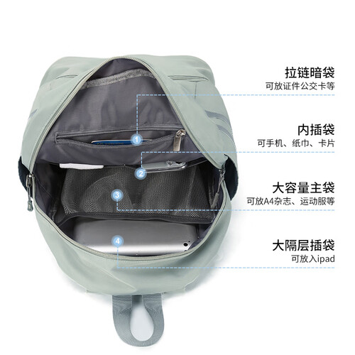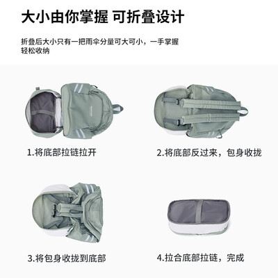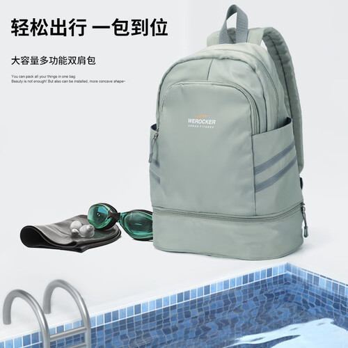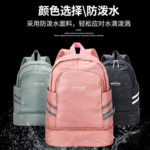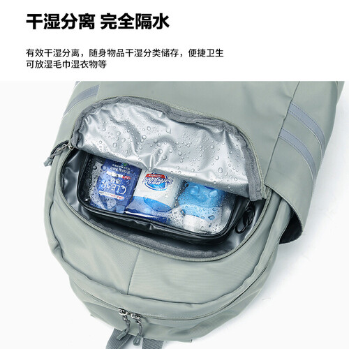 干湿分离设计,具有较好的隔水效果,可放心存放湿水物品。搭配双侧夜视反光条,在暗处可发出醒目亮光,夜晚出行更安全。