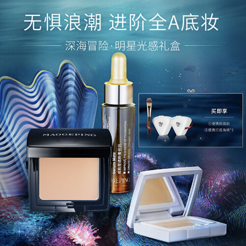 海洋理念全A底妆套装;无痕粉膏、高光粉膏和粉膏伴侣三部曲,达到长效持妆、轻磨皮的通透柔光肌。更有便携粉底刷和海绵相赠。