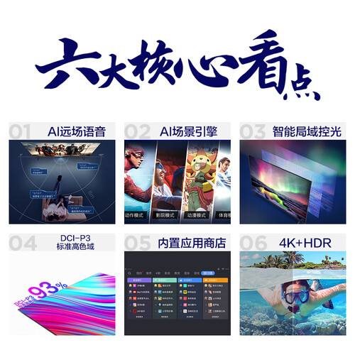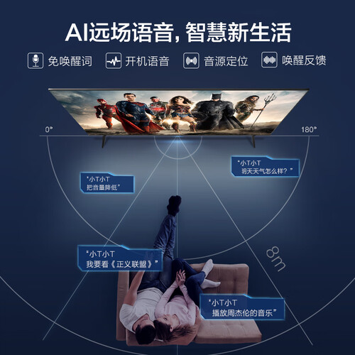 AI智慧远场语音控制,迅速搞定你的各种播放需求,无需遥控。自带多样化的接口,随心拓展PC、主机等设备。